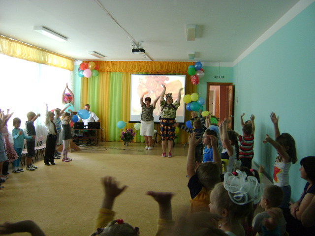 Он загадывал загадки о сказках, устроил соревнования, озорничал и веселил детей. Неожиданно для всех в зале появился медведь. Мишка предложил ребятам сделать музыкальную зарядку. А ребята рассказали медведю, что в школе нужно учиться , на уроках вести себя хорошо и слушать учителя. На празднике мальчишки и девчонки пели песни, читали стихи, играли в игру «Угадай мелодию». Праздник оставил массу положительных эмоций.