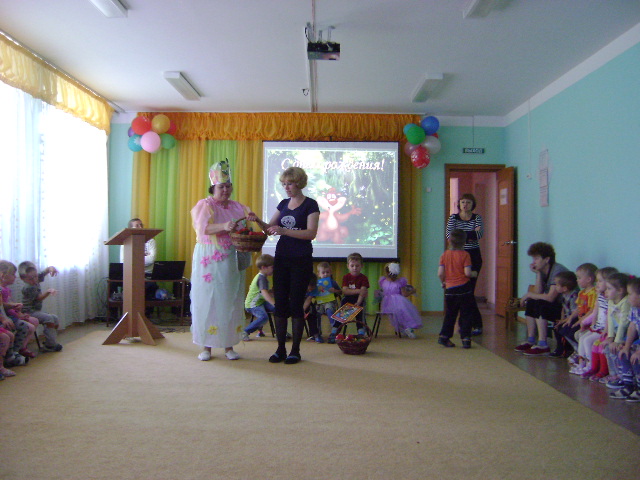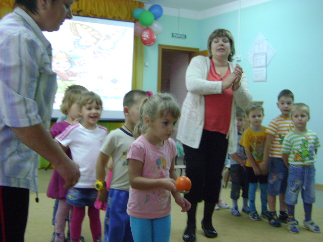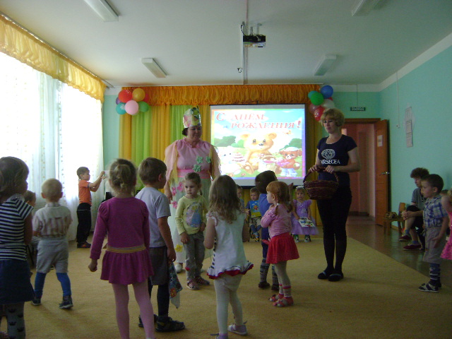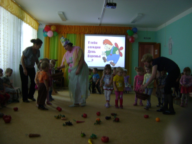 25 сентября в нашем детском саду отмечали коллективный день рождения. К воспитанникам младших групп в гости пришла Фрутто- няня, она превратила детей в ягоды и фрукты и пригласила в свой зеленый сад. Фрутто- дети с удовольствием играли в игры «Угадай на ощупь», «Перенеси фрукты», «Какой? Какое?», «Овощи- фрукты». Именинникам вручили подарки, которые дети сделали своими руками. За веселый праздник Фрутто- няня угостила детей вкусным, витаминным соком.