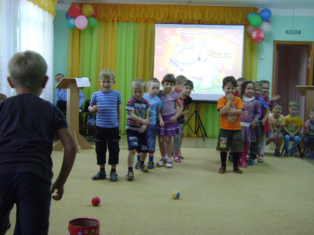 Воспитанники старших групп приняли участие в «Веселой эстафете», названия игр говорят сами за себя: «Веселые пингвинята», «Скачки на шариках», «Капризные шарики», «Веселые мартышки». В ходе эстафеты участники показали ловкость, смекалку, чувство юмора. В конце праздника дети исполнили танец «Маленьких утят», а для именинников – традиционный «Каравай». В группах для детей было организованно чаепитие с праздничным пирогом.