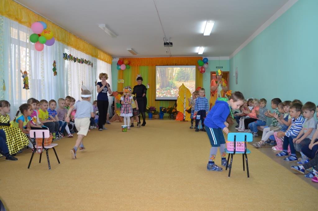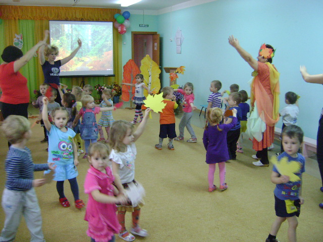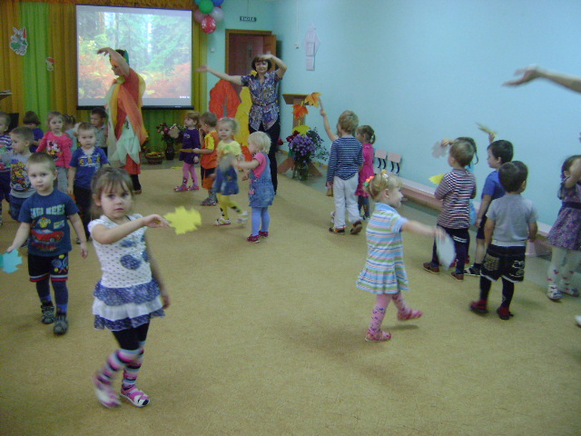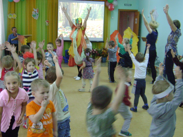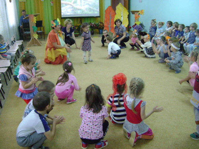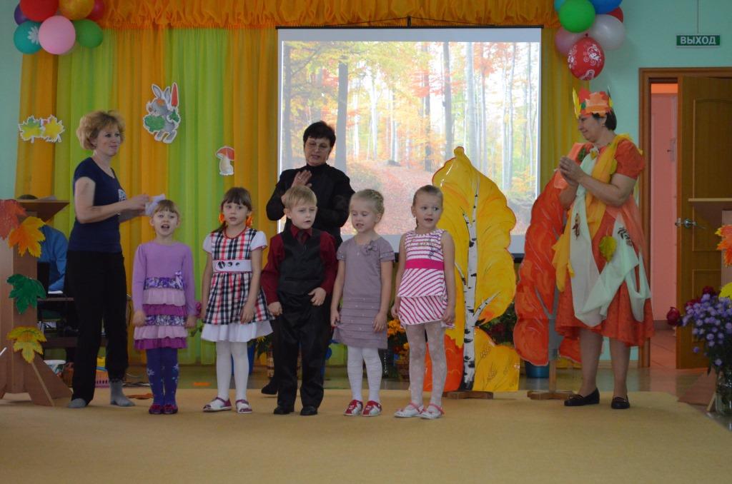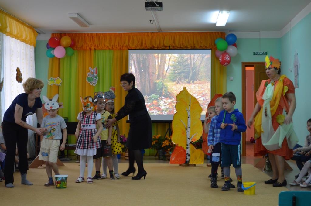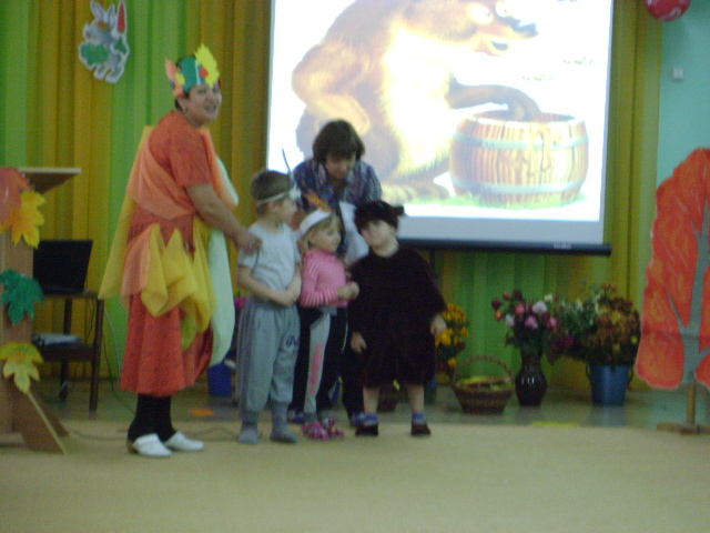 Воспитанники старшей группы №2 «Сказка» -воспитатель Солошенко Л.В., средней группы №5 «Солнышки» - воспитатель Бубнова В.Г. и второй младшей группы №4 «Лунтики» - воспитатели Глотова Т.А. и Кузнецова В.И.; группы №6 – воспитатели Калмакова Т.С. и Семенихина Г.Н.; средней группы №3 «Растишки» - воспитатель Маркина О.Н. Дети отправились в путешествие в осенний лес под слова «Раз, два, три в лес осенний проходи». И они очутились в осени, где всегда все хорошо, где любимая погода и любимая «Осень» (воспитатель Бубнова В.Г.) Ведущая праздника Солошенко Л.В. у младших дошкольников «Осень» (воспитатель Асанова Н.Д.) – ведущая (воспитатель Маркина О.Н.) Дети пели песни «Спасибо тебе Осень», «Про картошку», «Осенний дождь», играли в игры. В лесу шалил Степка – растрепка (воспитатель Калмакова Т.С.). Воспитанники старшей группы показали интересную инсценировку. «Заяц» – Виталик Литовченко, «Белка» - Полина Карпова, «Медведь» - Максим Куксгауз, «Ежиха» - Даша Ноженко. Ребята были очень артистичными и убедительными. А вот и подошел к концу осенний праздник. На улице холодно, ветрено, моросит осенний дождь со снегом. А в саду тепло и уютно и детей ждет сюрприз – вкусные груши!!! Вот и подошло к концу прекрасное лето…Но это совсем не повод для грусти. Впереди чудесная осень, которая не менее прекрасна, чем другие времена года. О чем мы убедились на нашем празднике.
