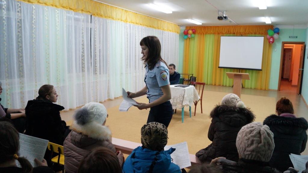 21 ноября в нашем саду прошло общесадовское родительское собрание с участием сотрудников Госавтоинспекции по Волчихинскому районуинспектора по пропаганде безопасности дорожного движения отделения ГИБДД ОМВД РФ по Волчихинскому району старшего лейтенанта полиции Ирины Рогалёвой и инспектора ДПС ОГИБДД ОМВД РФ по Волчихинскому району лейтенанта полиции Дмитрия Потехина. Они обратились к родителям воспитанниковне только как к родителям, но и как к участникам дорожного движения, с просьбой неукоснительно соблюдать Правила дорожного движения, подавая личный положительный пример детям. Также разъяснили присутствующим об особенностях правил безопасности в зимний период, обратив особое внимание на принятие мер родителями по обеспечению безопасности своим детям, таких как , использование детских удерживающих устройств, применения световозвращающих элементов на предметах одежды, приводя конкретные примеры, провели беседу направленную на профилактику детского дорожно-транспортного травматизма, предупреждение дорожно-транспортных происшествий с участием детей, рассказав о так называемых «дорожных ловушках» - примерно одинаковых, повторяющихся ситуациях, случающихся при дорожно-транспортных происшествиях. В завершении встречи сотрудники Госавтоинспекции ответили на все интересующие вопросы, которые поступали от присутствующих родителей. Кроме того сотрудники ОГИБДД ОМВД РФ по Волчихинскому району вручили всем присутствующим заранее подготовленные «памятки безопасности».