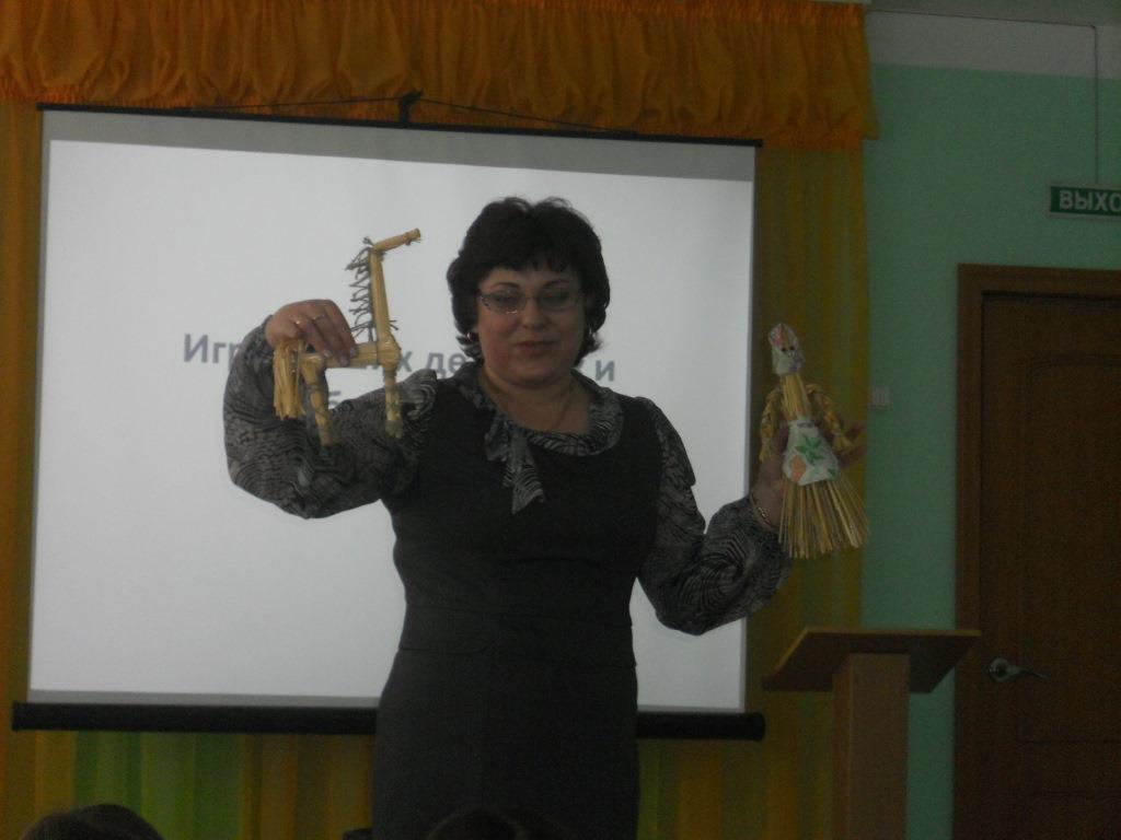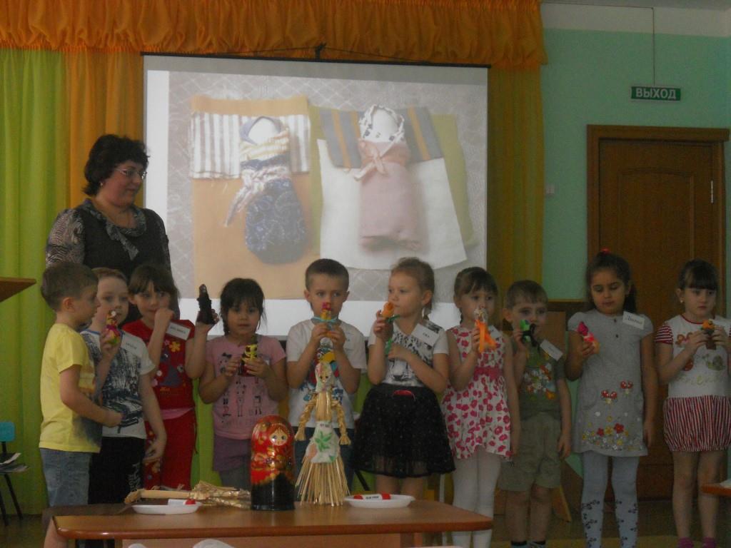 3.02.2015г. в рамках преемственности детского сада и школы Сорокина Светлана Анатольевна учитель начальных классов МКОУ «Волчихинская средняя школа №2» провела мастер-класс «Игры наших дедушек и бабушек» с детьми старшей группы № 2 нашего сада. Очень интересно прошла беседа с детьми о любимых игрушках, рассказ об истории тряпичных кукол, деревянной матрёшки, свистулек и игрушек из соломы, все это прошло с показом презентации о видах кукол. Вместе с детьми сделала куклу- пеленашку. В конце мастер-класса представлена педагогом выставка тряпичных кукол.