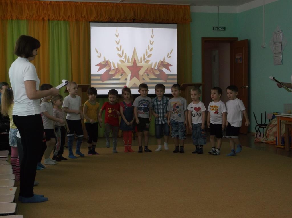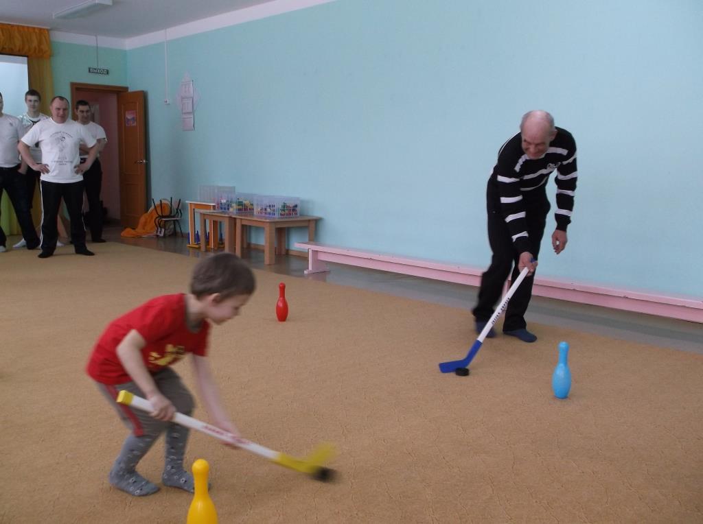 В группе №3 праздник прошел в форме «Веселых стартов». Команды преодолели полосу препятствий, играли в хоккей, отгадывали загадки, из конструктора «Лего» дети вместе с папами собирали боевую технику.