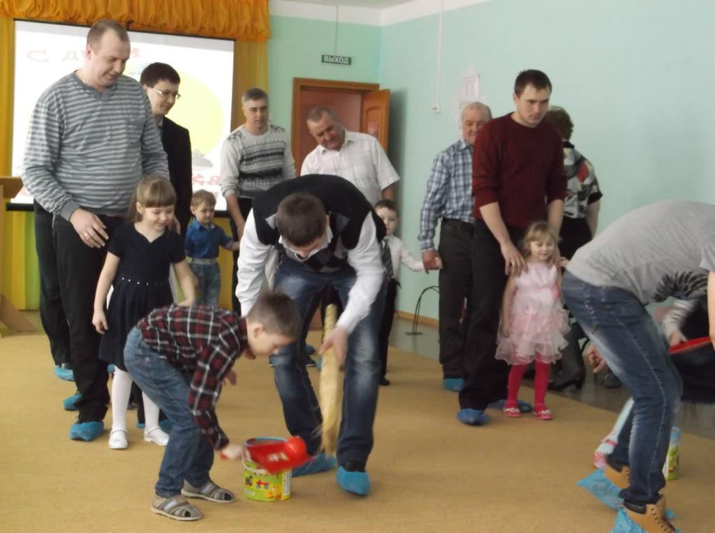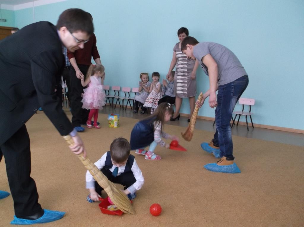 В группе №5 между командами были проведены конкурсы и соревнования: «Кенгуру», «Неровная походка», «Наведи порядок», «Боевая тревога», «Минное поле». В конкурсах принимали участие папы и дедушки воспитанников. Для гостей были исполнены стихи, песни, веселые частушки от девочек.