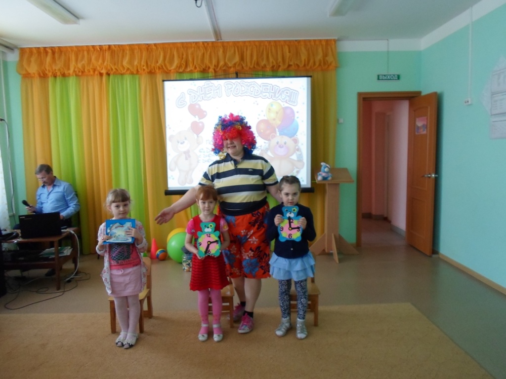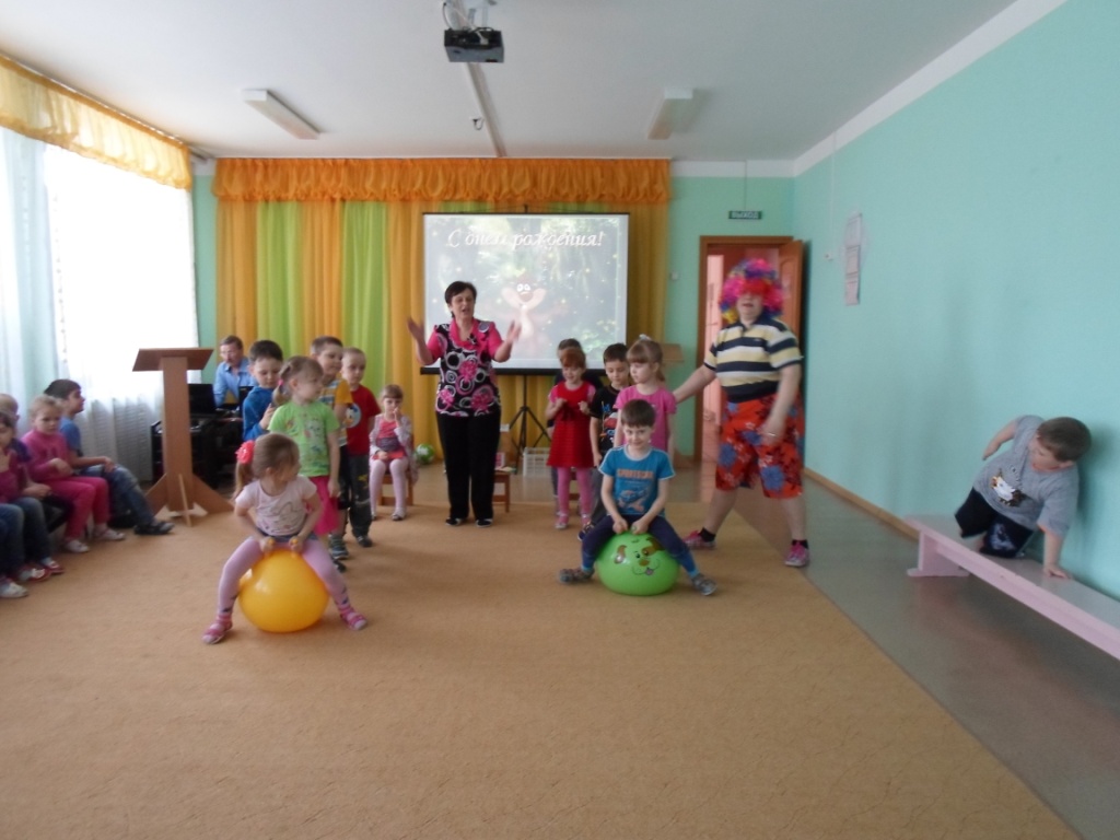 Как повезло родиться с пришедшею весной! Природа просыпается в день рожденья твой! Весна – лучше времени нет. Весной есть много праздников, но лучший твой день рождения. Сегодня в нашем саду поздравляли ребят, кто родился в апреле. Первыми поздравляли ребят младших групп: Ведущая Кузнецова В.И. и веселый клоун «Смешинкин» (Колесникова М.В.) весело поприветствовали ребят, познакомились поближе. Затем пригласили ребят в путешествие на «смехолете» в сказочную страну. Ребята быстренько построились, дружно сказали: «Ха – ха – ха!» и очутились в стране игр, в которой играли в игры с мячом. Под музыку передавали мяч, прыгали с ним, попадали в мишень, собирали разбросанный конструктор, играли в игру «Музыкальные стулья». Всем было весело и интересно, Дети старшего возраста с большим удовольствием играли в игры, танцевали, спели «Веселую песенку», поздравили именинников, подарили им подарки и веселый праздник закончился просмотром мультфильма про Вини - Пуха.