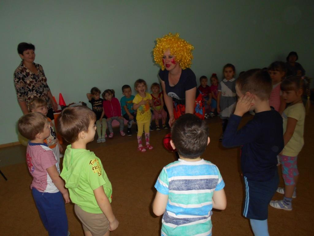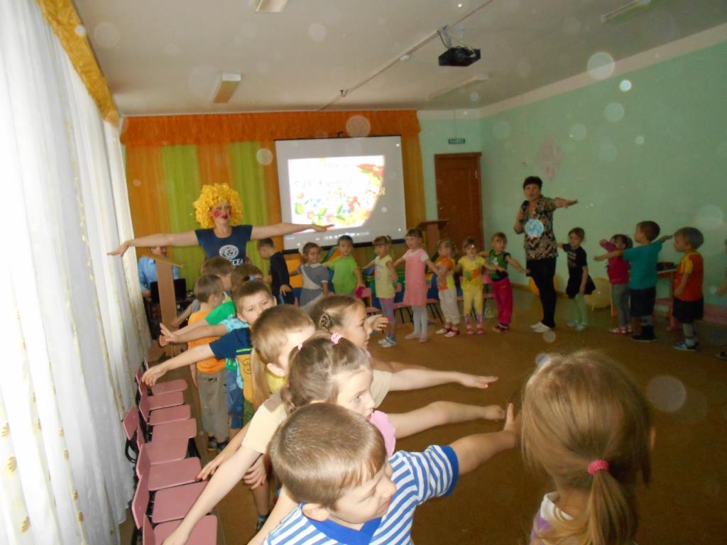Ребят старших и средних групп поздравил клоун Смешинкин. Он пригласил детей полетать с ним на Смехолете. Ребята пожелали именинникам здоровья, счастья, побольше подарков и мороженого.