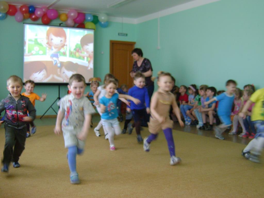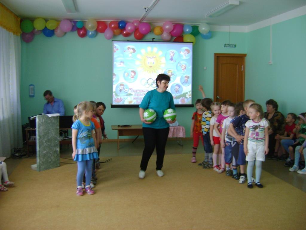 При просмотре слайдов воспитанники называли виды спорта. Свою ловкость показали ребята старших групп в эстафете «Перелей воду», а средних групп – в эстафете «Передай мяч». Малыши играли в подвижные игры «Солнышко и дождик», «Лохматый пес». Был показан отрывок из мультфильма « Как ослик занимался спортом», ребята сделали вывод, что спорт это труд для здоровья. А затем попробовали сделать самомассаж. В конце праздника ведущая пожелала чтобы у всех всегда было радостное настроение. А хорошее настроение и улыбка - защита от болезней.