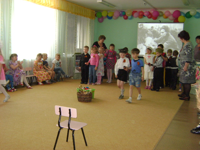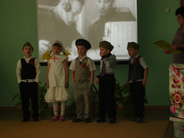 7 мая 2014г в старших группах №1 и 6 прошел утренник, посвященный Дню Победы «День воспоминаний». Воспитанники исполняли песни о войне, читали стихи. Много нового и интересного узнали при проведении конкурсной программы между группами «Тяжело в учении - легко в бою», дети отвечали на вопросы о Великой Отечественной войне, о родах войск, городах - героях, ветеранах, узнали за что участники войны получали медали и ордена, отгадывали загадки. Свою ловкость дети показали в эстафетах «Ловкие саперы», «Переправа», «Раненные бойцы». Гости праздника и родители с энтузиазмом поддерживали команды.